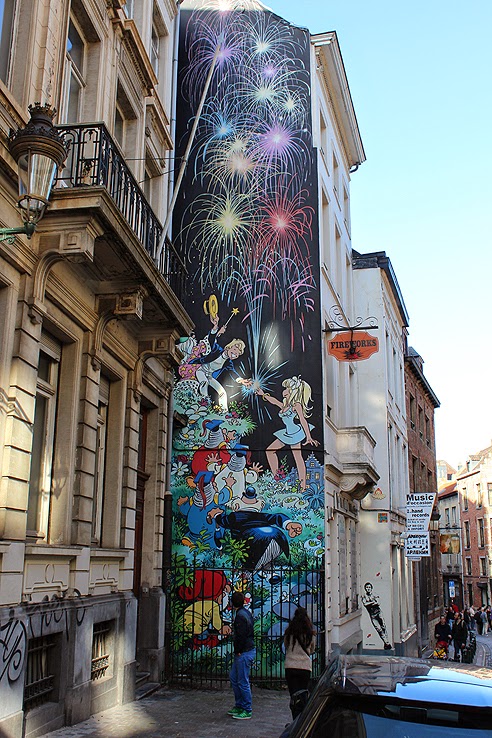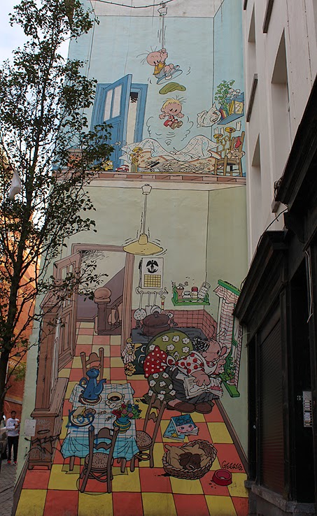Temos muitas mas muitas fotografias e decidimos dedicar um post às tiras de banda desenhada espalhadas pela cidade, há até um percurso pedonal no mapa da cidade para os visitantes seguirem e verem os murais de banda desenhada.