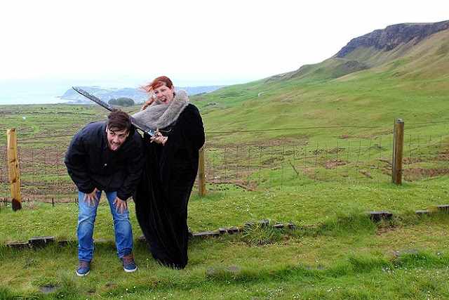 Seguimos para Carncastle, local onde Ned Stark decapitou um desertor do Nights Watch. A paisagem é de tirar o fôlego e ainda pude tirar uma fotografia com uma capa e espada na mão. Eu acho que até combina comigo!